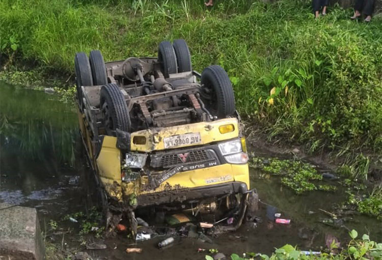 Akibatnya truk ini terperosok dan masuk ke sungai dalam kondisi trebalik. Pengemudi tidak mengalami luka, sedangkan penumpangnya hanya luka lecet dan menjalani rawat jalan.