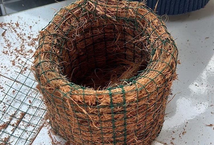Sementara itu, Ricki Dwi Erlangga mengatakan, pembuatan pot diawali pemilihan serabut kelapa yang kering dan bersih, kemudian direndam agar teksturnya lebih lentur dan mudah dibentuk. Setelah itu, serabut disusun pada cetakan atau rangka kawat sesuai bentuk pot yang diinginkan. Serabut yang sudah dibentuk kemudian dipadatkan dan dikeringkan dengan cara dijemur di bawah sinar matahari.